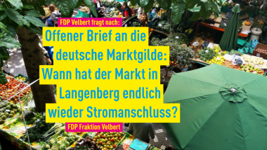 Wir haben einen offenen Brief an die deutsche Marktgilde geschrieben, um zu erfahren, wann in Langenberg der Markt nach dem Hochwasser endlich wieder voll betriebsfähig ist.