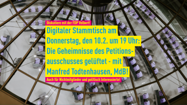 Am 10.02. um 19:00 Uhr findet wieder einen digitaler Stammtisch statt. Unser Gast: Manfred Todtenhausen, MdB nimmt uns mit in die Welt des Petitionsausschusses im Bundestag.